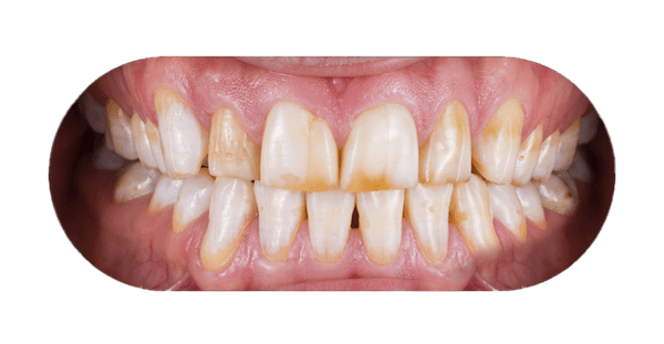 Decolorare sau hiperpigmentare (pete galben-maronii) pe smalț.